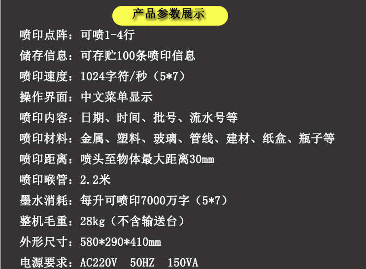 噴印字符包括中英文字符、阿拉伯數字、批號、標點符號及各種特殊圖形