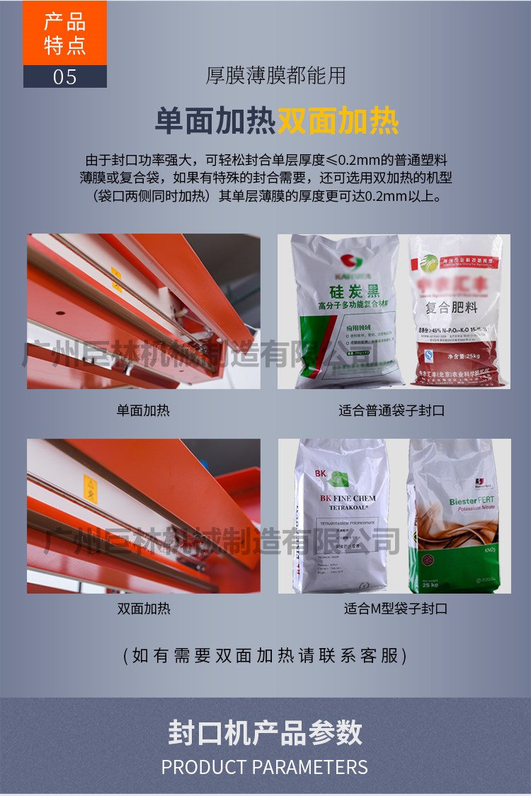 • 該系列封口機(jī)采用電子恒溫控制和無級調(diào)速傳動(dòng)系統(tǒng),具有自動(dòng)連續(xù)封口、印刷產(chǎn)品標(biāo)簽、一次完成之功能,并可臥、立落地使用。用于單層薄膜及各種復(fù)合薄膜的封口、制袋,廣泛應(yīng)用在食品、制藥、種子、化工、輕工等部門。