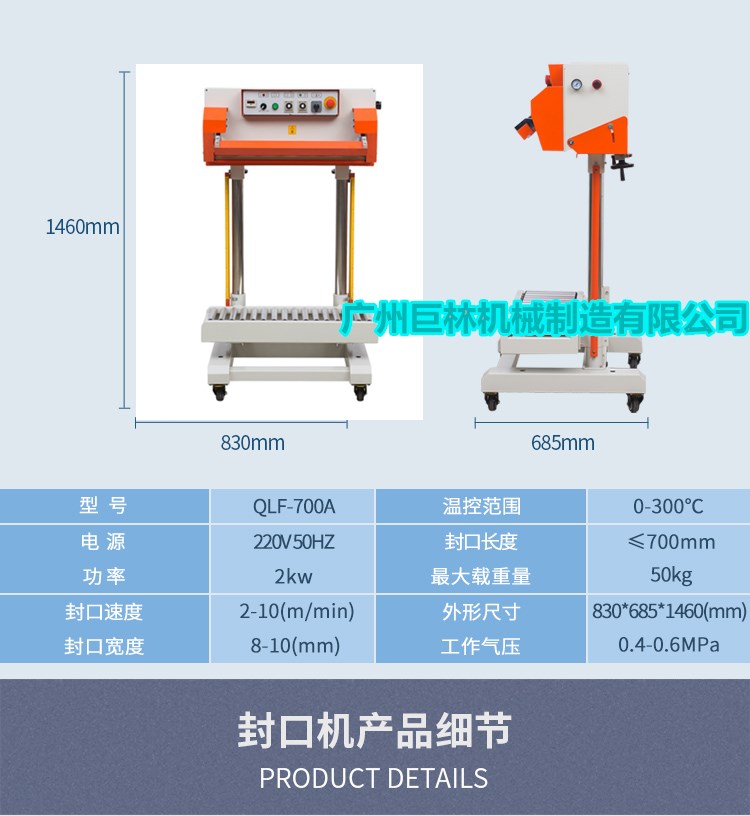 • QLF-700A立式氣動(dòng)瞬熱封口機(jī)